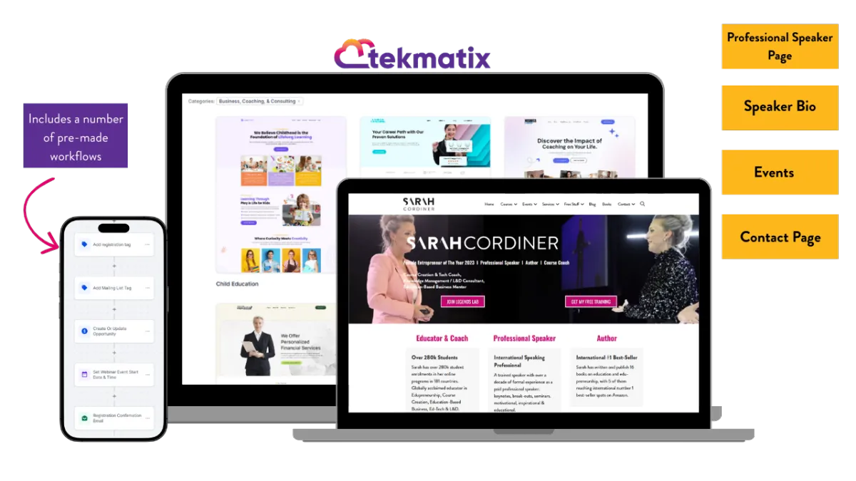 We can migrate all of your tech from other platforms you are currently using to Tekmatix. Whether you want to move from other course platforms, email marketing platforms, other websites or CRMs – our team can do all of t1 Columnhe migration work FOR you.