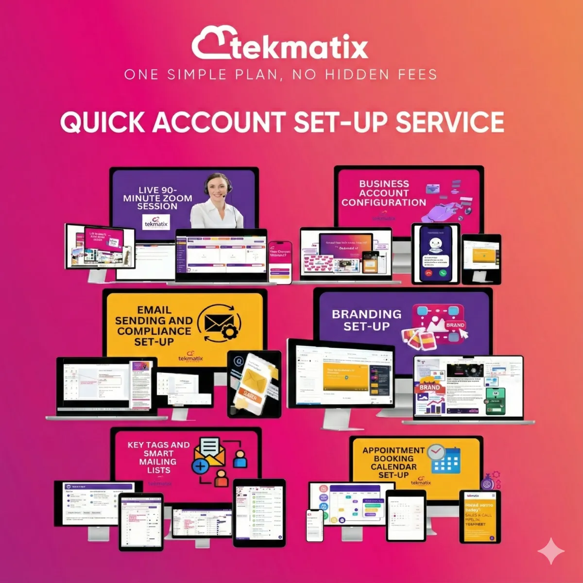 The Quick Account Setup Service is a hands-on, done-with-you implementation service that will ensure your Tekmatix account is fully up and running fast - and PROPERLY.
